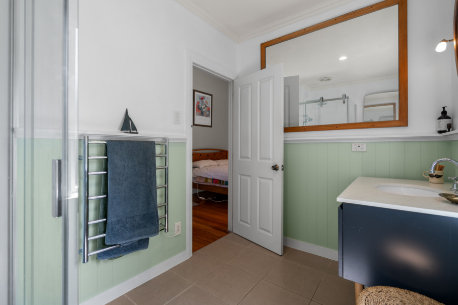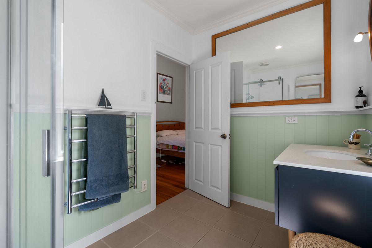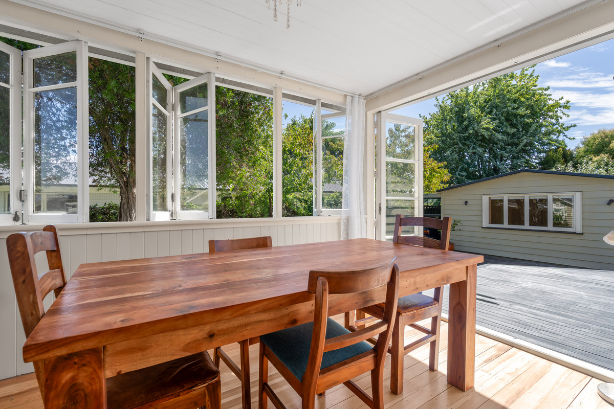 Beautiful box windows with cedar shingles, Art Deco frosted glass, and coloured leadlight details add timeless character, while tongue-and-groove heart Rimu flooring, supported by solid Matai joists, flows warmly throughout the home.