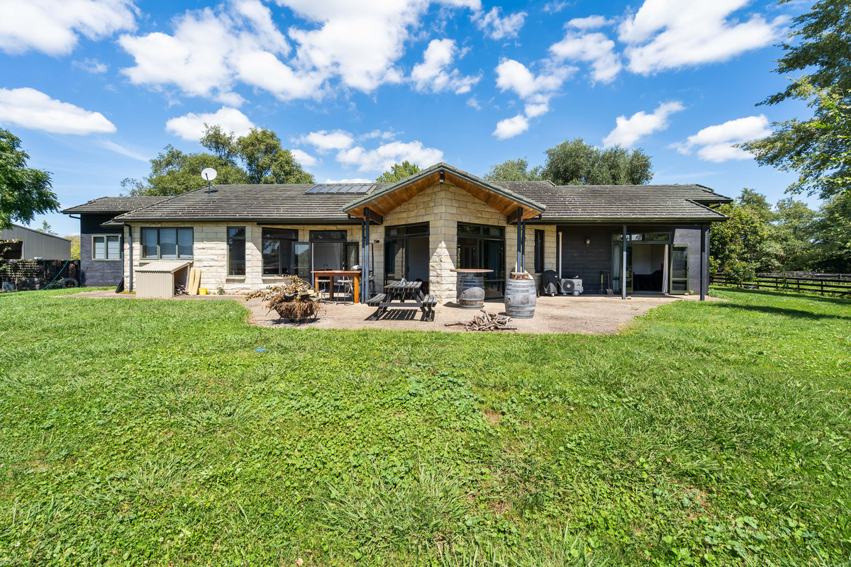 At the centre of the property sits a beautifully crafted architecturally designed Hinuera stone residence, offering timeless character and generous proportions. Featuring four bedrooms, this home blends solid craftsmanship with comfortable family living, perfectly positioned to enjoy the surrounding rural outlook.