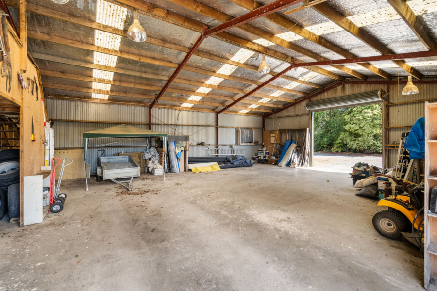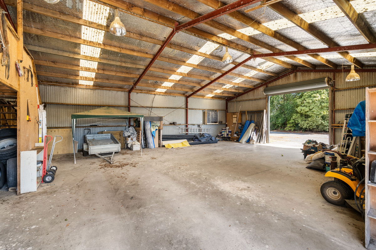 For those seeking business or equestrian functionality, the infrastructure here is outstanding. A large high-stud shed with three roller doors is commercially zoned, opening the door to work-from-home opportunities, storage, or business use. The equestrian facilities include three horse boxes with tie-up stalls, a separate feed shed, multiple smaller yards, post-and-rail fencing, and a large water tank servicing the paddocks, making this property well-suited to horse enthusiasts or hobby farming alike.
