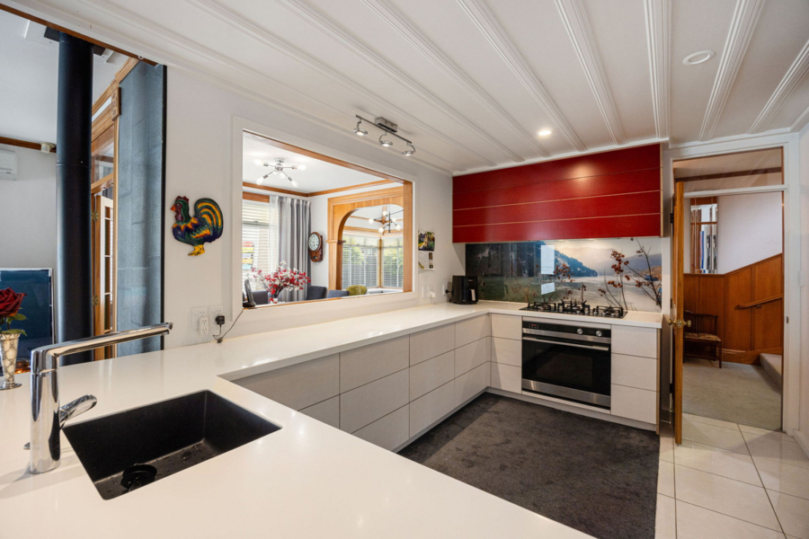 • Updated kitchen with breakfast bar, walk-in pantry, flowing to one of your living areas, warmed by your choice of the gas fire or heat pump.